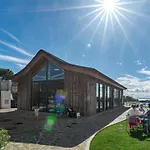 Stedet har en terrasse med udsigt over havet.